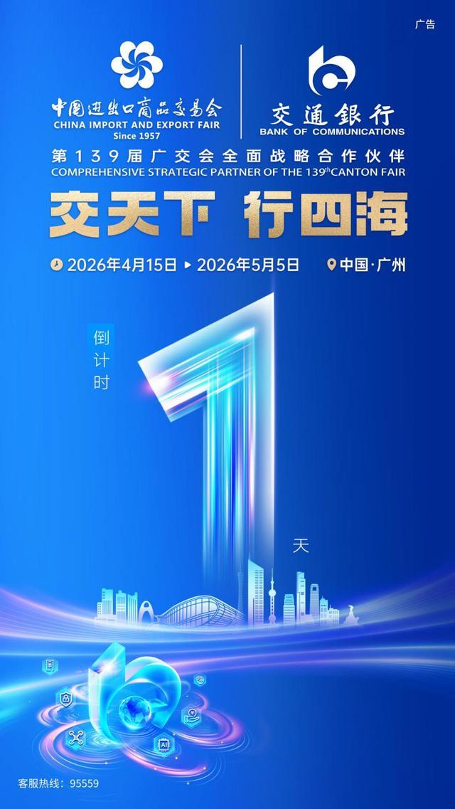 明日,第 139 届广交会将在广州盛大启幕。作为本届广交会全面战略合作伙伴,交通银行以 “交天下 行四海” 为理念,依托全球化服务网络与数字化金融能力,为参展企业提供跨境结算、贸易融资、汇率避险、供应链金融等一站式综合金融服务,以专业之力链接全球商机,护航中国外贸高质量发展。